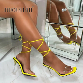 Eilyken New PVC Transparent Crystal Women Slippers - Pointed Toe High Heels