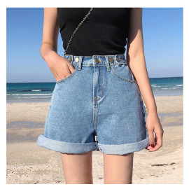 Garemay Women's Denim Shorts Classic Vintage High Waist Blue Wide Leg Female Caual Summer Ladies Shorts Jeans For Women